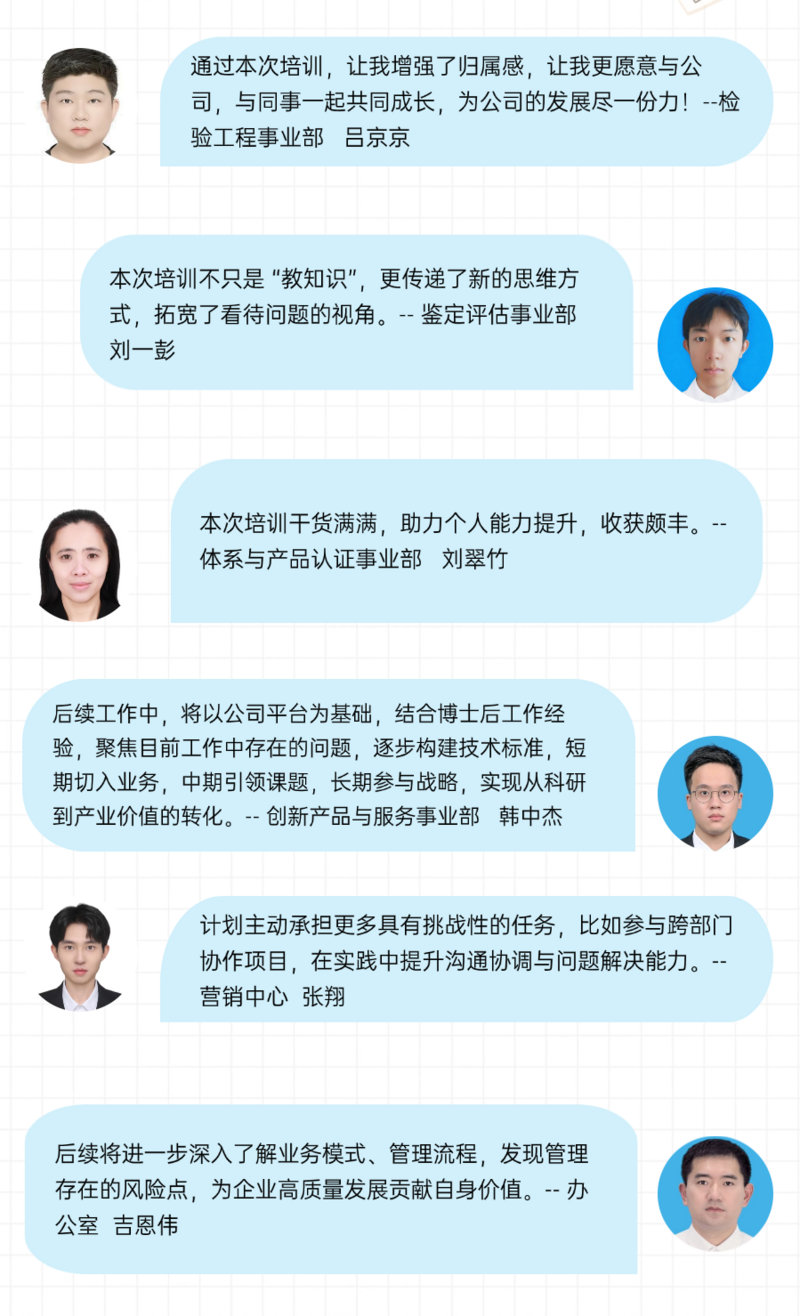 交流环节通过互动破冰、经验分享等形式展开,现场氛围热烈融洽,展现出蓬勃向上的精神面貌。参训员工纷纷表示,此次培训不仅加深了对公司发展历程、组织架构、制度文化的理解,也增强了归属感与职业方向感。