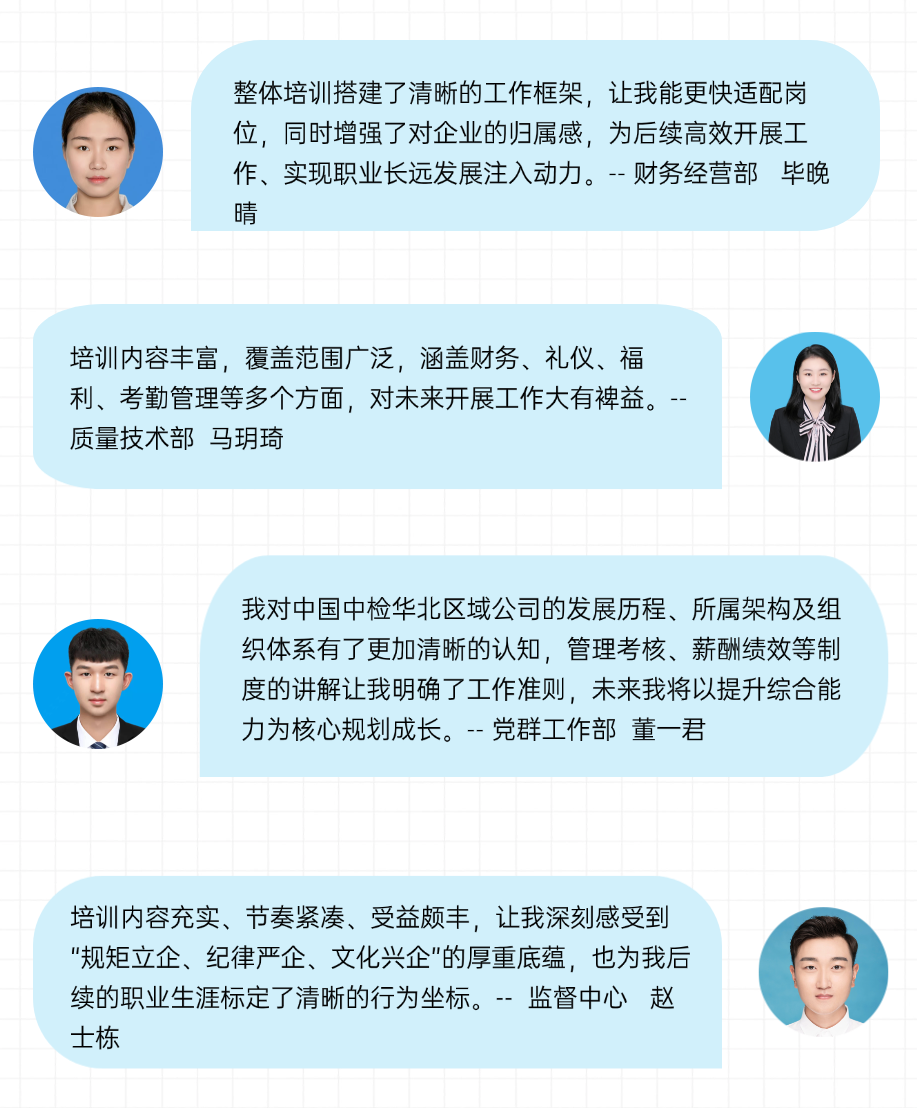 近日,中国中检华北区域公司2025年度新员工培训交流会在京举行。本次会议以“深化认知、促进融通、凝聚合力”为主题,旨在总结新员工入职以来岗位实践成效,并围绕“十四五”收官冲刺与“十五五”谋篇布局的关键节点,为新员工提供系统性赋能与动员,助力其快速融入企业、共同推动区域公司高质量发展。